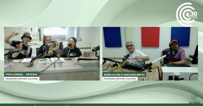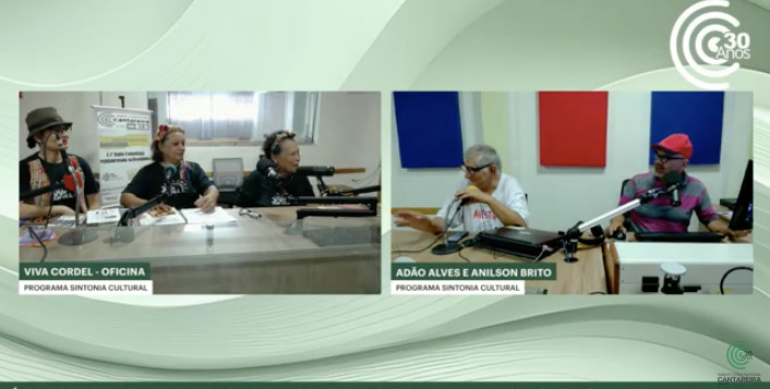 As três falaram sobre o Viva Cordel e a tradição da literatura de cordel – que desde 2018 é reconhecida como Patrimônio Cultural Brasileiro – na edição de 17 de janeiro do programa Sintonia Cultural, apresentado por Adão Alves – que também é escritor – e Anilson Brito – jornalista que realizou seu trabalho de conclusão de curso para este graduação sobre a literatura de cordel.