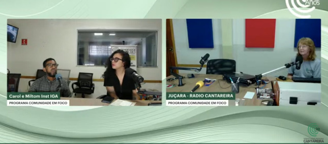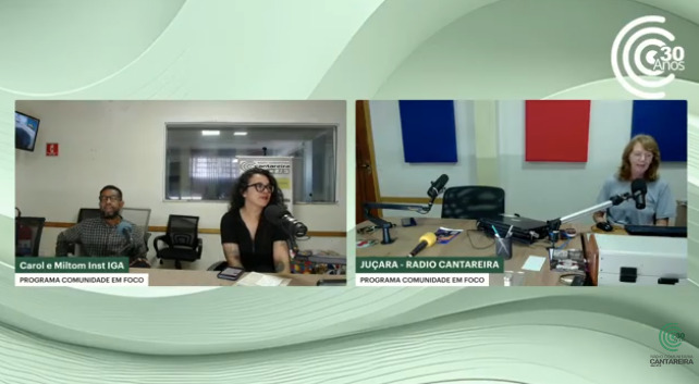 “Nós escrevemos o projeto, fazemos a captação de recursos junto ao poder público, seja via políticas públicas, seja via emendas parlamentares, por exemplo, e repassamos estes valores às instituições parceiras nos territórios, organizamos a compra de materiais, a formação de profissionais, a contratação de educadores e fazemos a prestação de contas”, detalhou Carolina Souza, coordenadora de projetos do IGA, que foi entrevistada na edição de 10 de setembro do programa ‘Comunidade em Foco’, apresentado por Juçara Terezinha na rádio comunitária Cantareira FM. No estúdio também esteve Milton Alves, gestor de projetos do IGA.